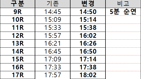 ㅇ 내 용 : 9경주부터 17경주까지 경주시간 5분 순연