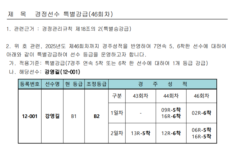 경정선수 특별강급(12기 강영길)